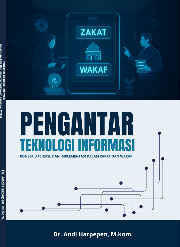 Buku Pengantar Teknologi Informasi: Konsep, Aplikasi, dan Implementasi dalam Zakat dan Wakaf membahas peran strategis teknologi informasi dalam mendukung pengelolaan zakat dan wakaf di era digital. Disajikan secara sederhana dan sistematis, buku ini mengulas dasar-dasar perangkat keras, perangkat lunak, jaringan, keamanan data, serta aplikasi digital yang relevan dengan filantropi Islam. Pembaca akan menemukan pemahaman bagaimana TI, mulai dari sistem operasi, basis data, hingga aplikasi mobile dan cloud computing, dapat meningkatkan transparansi, akuntabilitas, dan efektivitas lembaga zakat dan wakaf. Dengan contoh penerapan nyata seperti sistem zakat online, payment gateway syariah, dan website fundraising, menjadikan buku ini sebagai salah satu referensi bagi mahasiswa, akademisi, maupun praktisi yang ingin mengintegrasikan teknologi dengan prinsip syariah. Sebuah panduan ringkas namun komprehensif untuk mewujudkan pengelolaan zakat dan wakaf yang profesional, inovatif, dan berkelanjutan.